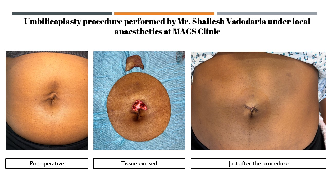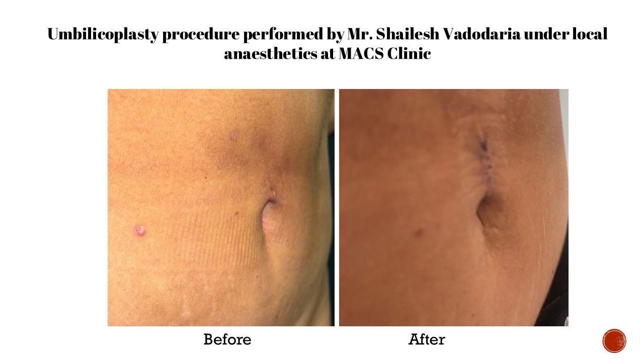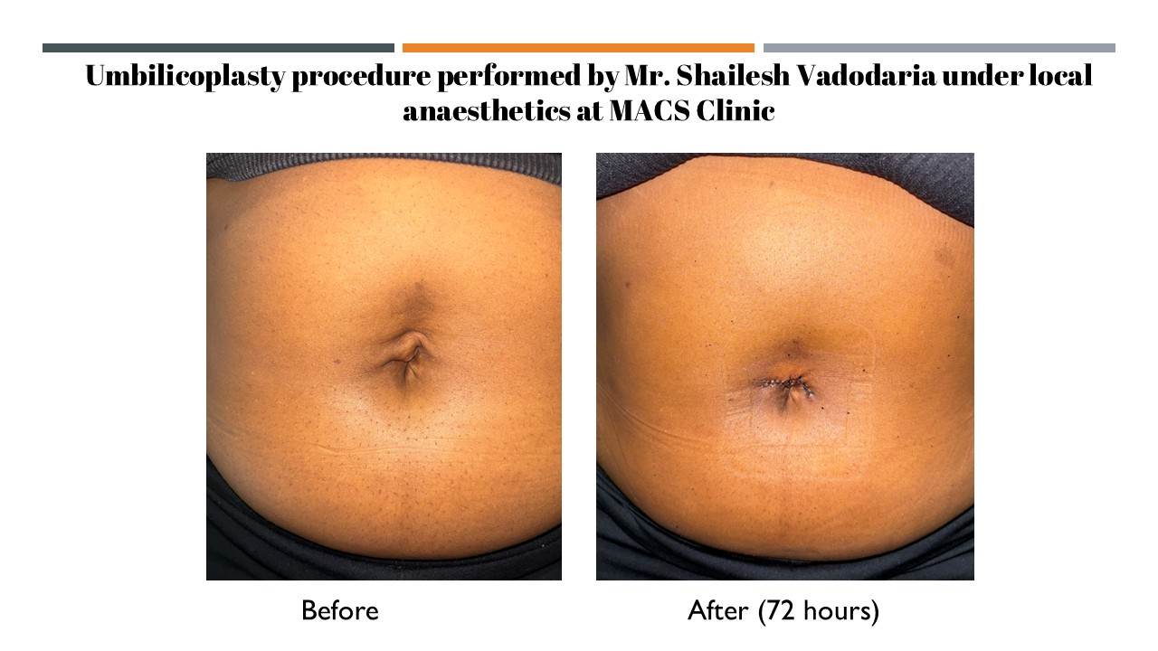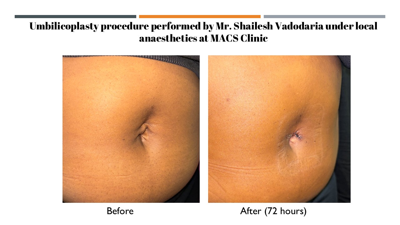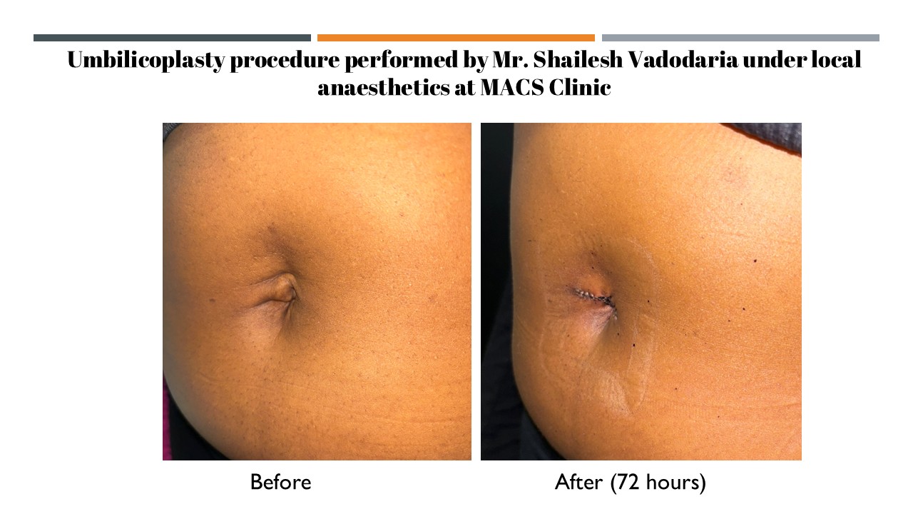 Fortunately, an increasing amount of plastic surgeons are now offering this relatively straightforward procedure which in recent years has grown in demand. Anyone considering an umbilicoplasty should contact Mr Vadodaria’s office to book an one hour consultation.